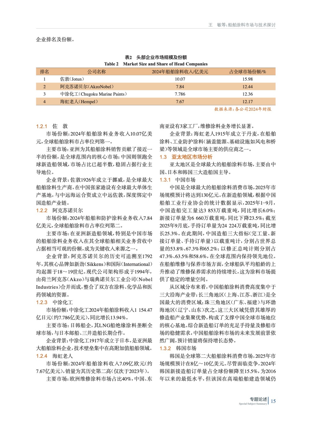 摘要:系統研究了2023?2025年全球與中國船舶涂料市場行業規模,解析了以中日韓為核心的亞太市場及中國“外資主導、本土追趕”的競爭格局,并深入闡述了防污涂料向環境友好、長效與智能化演進的技術動態。分析表明,外資企業的綜合優勢構筑了高端市場壁壘,而本土企業的根本性困境在于部分核心技術缺失、國際認證不足與高端應用相對匱乏。因此,未來破局的關鍵在于:需精準把握環保法規與國產替代窗口,通過攻克關鍵材料、突破認證與高端應用壁壘,實現從規模擴張到技術引領的根本性轉型,從而助力中國從造船大國向造船強國轉型。