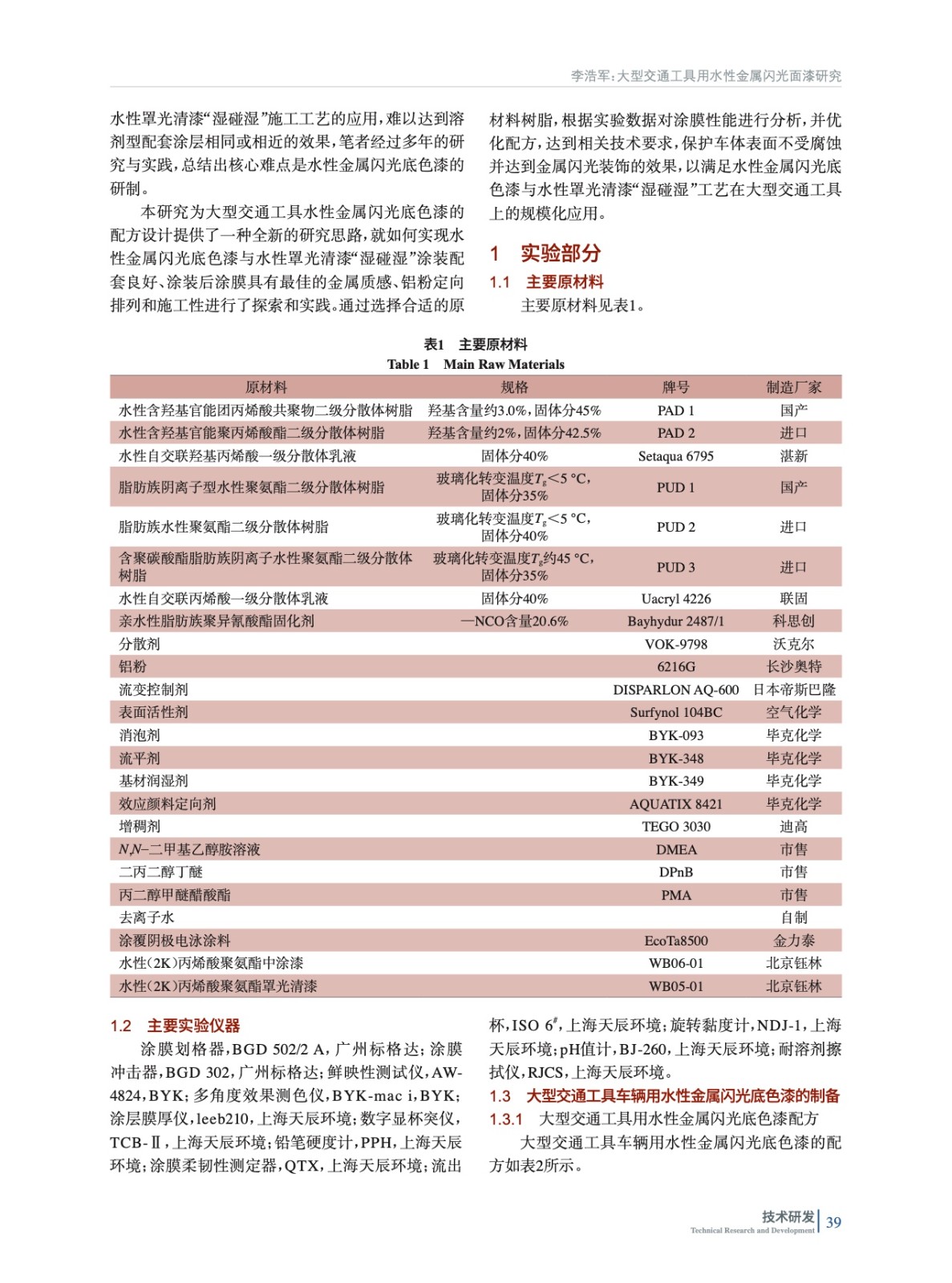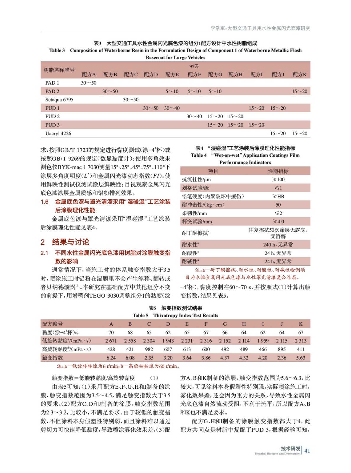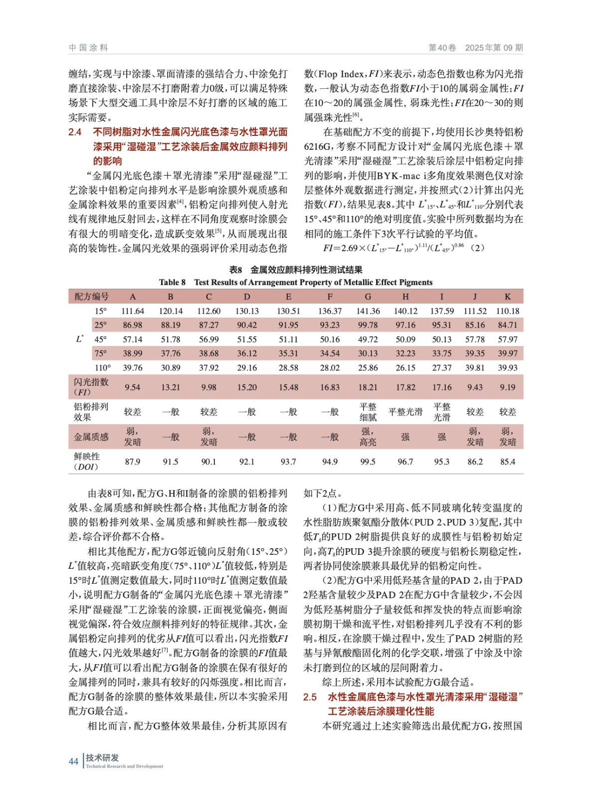 大型交通工具用水性金屬閃光面漆研究