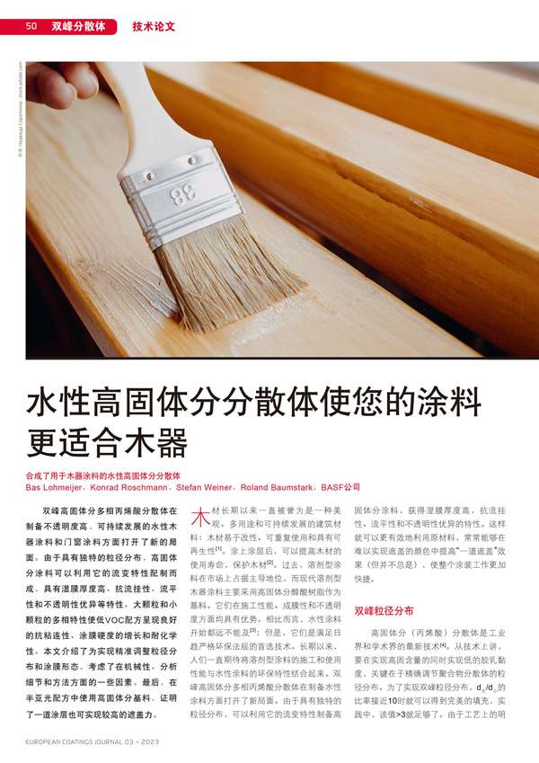 摘要:水性高固體分分散體使您的涂料,更適合木器