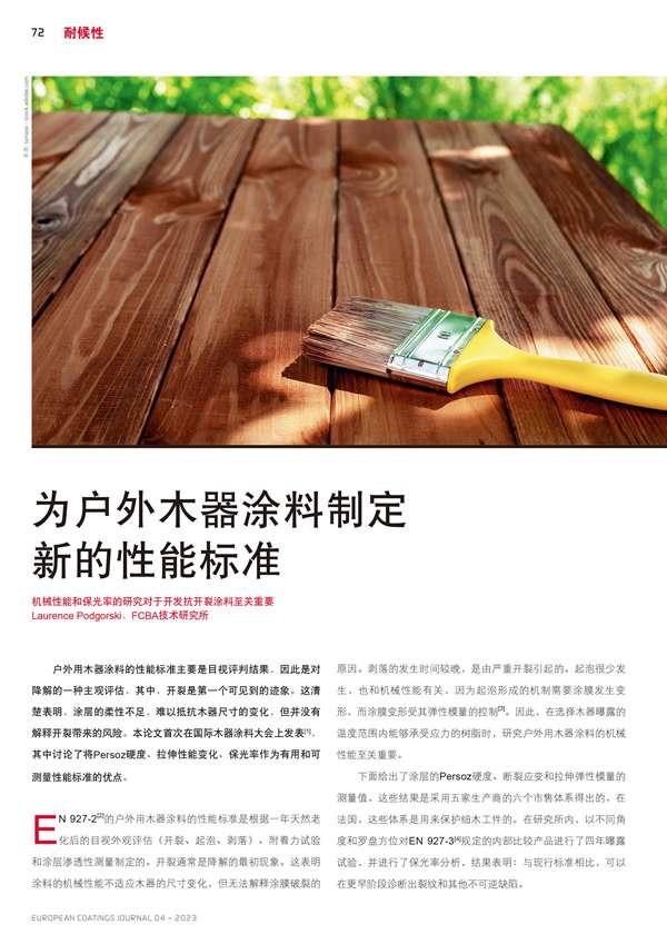 摘要:為戶外木器涂料制定新的性能標(biāo)準(zhǔn)