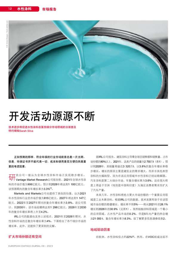 技術(shù)進(jìn)步將促進(jìn)水性涂料在某些細(xì)分市場領(lǐng)域的日漸普及