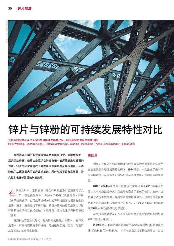含鋅片的配方可以作為鋅粉的可持續發展替代品, 同時具有防電化學腐蝕性能