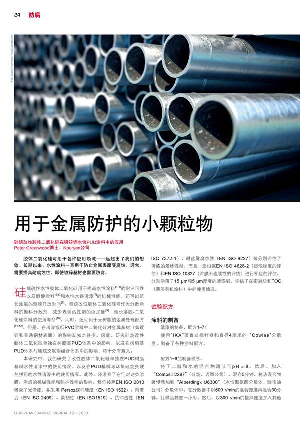 硅烷改性膠體二氧化硅在鍍鋅鋼水性PUD涂料中的應(yīng)用