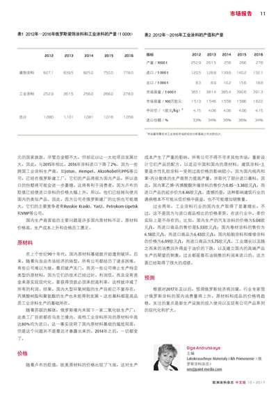 俄羅斯涂料市場:2016年及預測