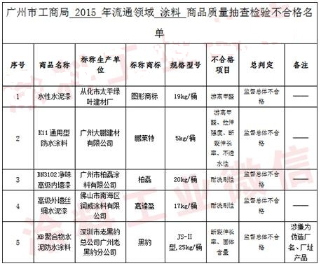 防水涂料上2016國(guó)家質(zhì)檢總局重點(diǎn)抽查家居產(chǎn)品榜