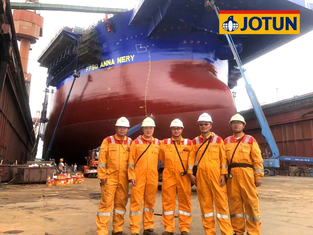 升級后的油船同樣會面臨復(fù)雜的氣候環(huán)境等因素影響,防腐保護也是不可忽視的環(huán)節(jié)之一。佐敦工業(yè)保護涂料有幸為這艘巨輪提供高端防污防腐涂裝方案。其中,專為維修類項目打造的低表面處理環(huán)氧耐磨漆,具備對低處理表面的高容忍度,提供長久的附著和防腐保護。同時,良好的輥、刷涂性能,可為施工帶來良好的漆膜成型與外觀;另外還可提供其他環(huán)氧類涂料難以提供的豐富色彩,是維修項目涂裝的優(yōu)選方案。本項目使用了第二代靜水型丙烯酸硅烷低阻防污漆Seaquantum Ultra S,與第一代產(chǎn)品相比,該產(chǎn)品的樹脂在海水中水解速度更加穩(wěn)定,能提供更持續(xù)高效的防污效果,特別適用于FPSO等大型固定式海上設(shè)施。該產(chǎn)品在大量的Offshore項目,特別是FPSO上得到了廣泛應(yīng)用,取得了很好的效果,獲得了全球主要船東的青睞和認(rèn)可。
