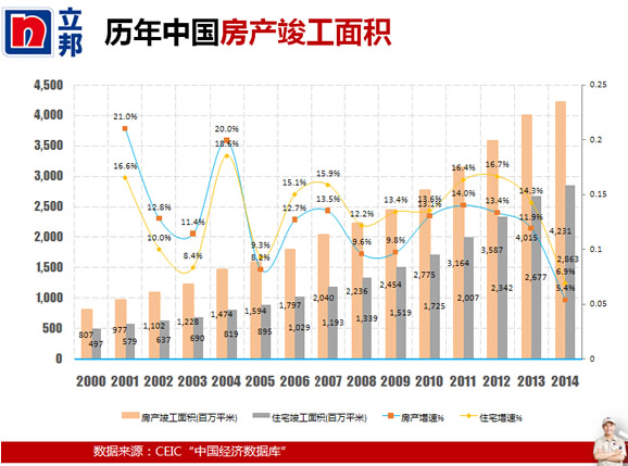歷年中國房產竣工面積