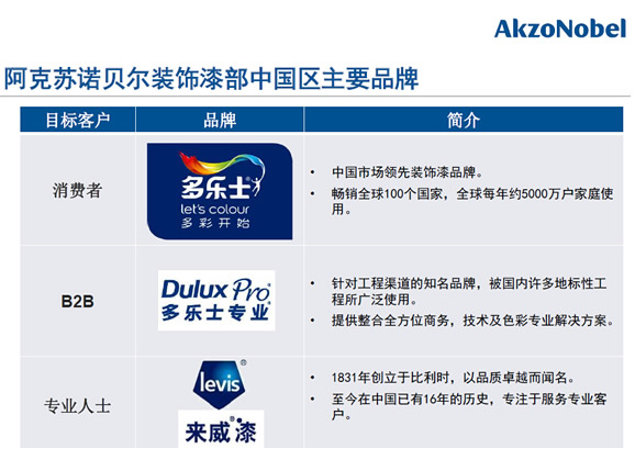 阿克蘇諾貝爾裝飾漆部中國區主要品牌