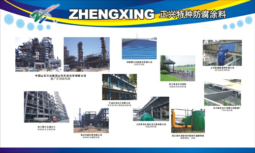 正興特種防腐涂料并非一般的環氧樹酯、聚氨酯、氯磺化、丙烯酸、不飽和樹脂等類型,屬于高分子高固體雙組份反應型復合材料,可以長期在強酸、強堿、強鹽和各種化學介質且長期可在海水中侵泡使用,常溫下六年以上保持完好,且施工方便,無需底涂,降低涂料與施工成本,無毒、無氣味、無污染。涂料性能均經過“國家化學建筑材料測試中心”檢測,主要應用于:工業企業如石油化工的管道、噴塔,煉油設備、貯槽、礦山冶煉、水泥廠設備;現代交通運輸業如橋梁、船艇、集裝箱、火車軌道設施、汽車、機場設施等;能源工業如污水處理設備、水罐、氣罐、石油精制冶煉設備、石油貯存設備(油管、油罐)、輸變電設備、核電、煤礦等;新興海洋工程如海上設施、海岸碼頭及海灣構造物、海上石油鉆井煉油平臺等;市政設施如煤氣管道及其設施(如煤氣柜)、天然氣管道、飲水設施垃圾處理設備等。