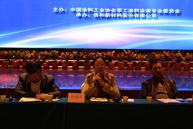 中國涂料工業協會會長孫蓮英女士、軍工涂料涂裝專業委員會顧問倪宏強將軍、董文久將軍、郝葉力將軍、紀順心大校;中國涂料工業協會副會長王詩榕先生、黃繼偉先生、張衛中先生等領導,以及來自全國各地軍工涂料涂裝相關生產企業80余人出席了此次大會。會議由軍工涂料涂裝專業委員會副主任馬詠楠先生主持。