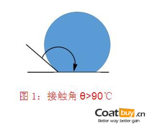用科學術語講:這是一個“潤濕作用”問題。即固體表面(涂有涂層)和液體相接觸時,它們之間的夾角(被稱為接觸角)通常可以概括為下列三圖所示: