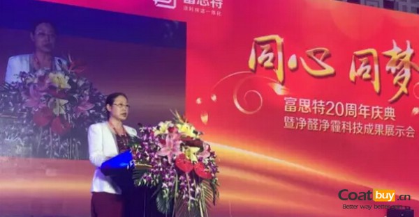 中國涂料工業(yè)協(xié)會會長孫蓮英在致詞中指出:“20年來,富思特在掌舵人郭祥恩董事長帶領(lǐng)下,始終致力于中國建筑節(jié)能與環(huán)保事業(yè)的發(fā)展,富思特不僅憑借優(yōu)異的產(chǎn)品品質(zhì)與服務(wù)引領(lǐng)行業(yè)的發(fā)展,而且在涂裝技術(shù)的規(guī)范與進步、涂裝工的技能培訓(xùn)、涂裝施工的現(xiàn)代化、機械化研究應(yīng)用等方面做出了突出的貢獻。”