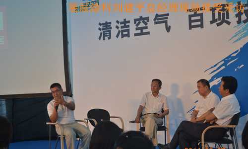 記者專訪環節,中國環保產業協會廢氣凈化委員會欒志強教授、中國涂料工業協會譚春雷秘書長、曲美家具董事長趙瑞海先生、展辰涂料劉建平總經理一同接受了記者們的專業提問。其中,展辰涂料劉建平總經理對應用在曲美家具生產中的展辰水性漆產品性能、安全節能、排放環保等方面,向現場記者們作了專業性的闡述,讓大家對水性漆材料、水性漆在家具行業的應用前景有了更深入的了解和認識。