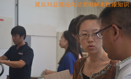 展辰劉總現場向記者講解水性漆知識