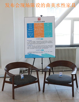 發布會現場陳設的曲美水性家具