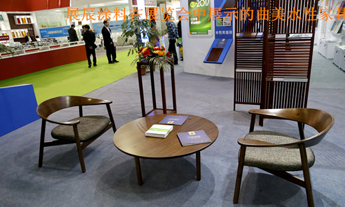 展辰涂料在展覽會中展示的曲美水性家具