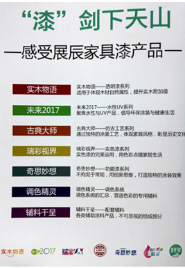 站在用戶的角度審視涂料,2014年展辰涂料面向市場推出“漆劍下天山”產品描述體系,這是一次大膽的嘗試,其目標就是讓家具人看懂涂料,完美的詮釋涂料的各種特性。展辰全新的七大系列產品分類,正是從這個角度實現了基于客戶需求的產品分類與研發體系,甚好地將家具人與涂料人緊密地聯系在了一起。