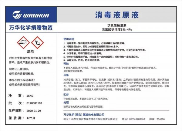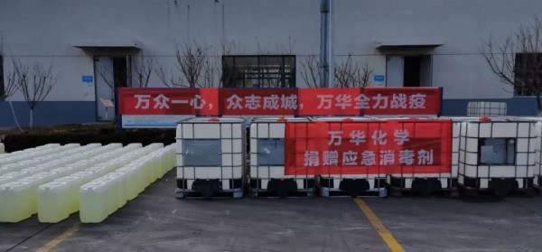 3)面對疫情蔓延消殺用品供應不足狀況,向煙臺市政府防疫工作小組承諾:萬華化學申請成為煙臺市消毒液的后備儲備單位,疫情期間根據(jù)政府要求向煙臺市免費敞口供應消毒液,全力支持疫情防控。首批捐贈消毒液10000公斤,已陸續(xù)送往煙臺市開發(fā)區(qū)應急管理局和煙臺市應急管理局。