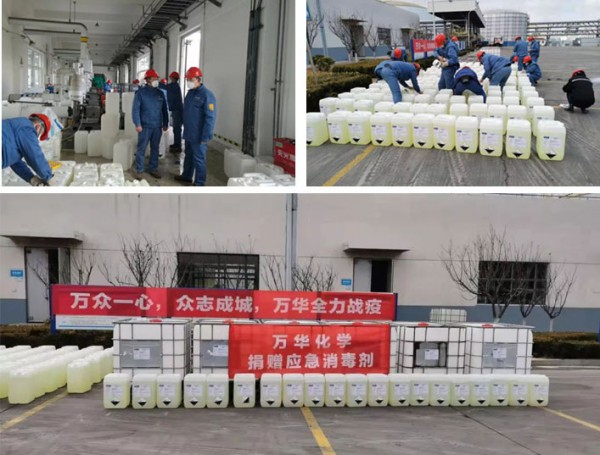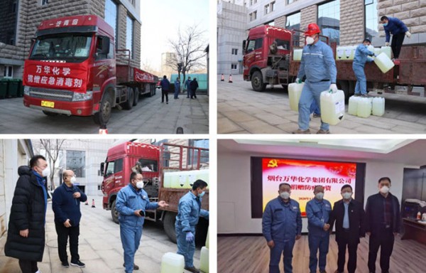 1月30-31日,萬華陸續(xù)向煙臺海關(guān)、開發(fā)區(qū)交警隊、蓬萊應(yīng)急管理局、潮水區(qū)應(yīng)急管理局以及部分小區(qū)和醫(yī)療機構(gòu)免費捐贈了消毒液。截至1月31日,已向社會各界捐贈了約17700公斤消毒液。