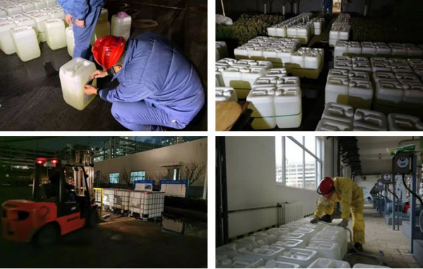 由于平時產(chǎn)品出廠時主要是以噸桶和罐車運輸,為了適應(yīng)社會需要,氯堿熱電公司立即改造了充裝管線,從而適應(yīng)小桶灌裝生產(chǎn)。采購部于當天采購了300只25公斤裝塑料桶,生產(chǎn)管理部和市場部于當天設(shè)計出適合小桶尺寸的消毒液說明標簽。從下午到晚上,接到指令的50多名員工立即加班加點配置生產(chǎn)消毒液。配置、分析、質(zhì)檢、灌裝、粘貼標簽、裝車……萬華煙臺工業(yè)園開通了應(yīng)急綠色通道,簡化出廠程序,保證消毒液在最短的時間內(nèi)送達。