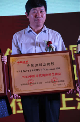 晨陽集團(tuán)副總裁花東栓代表晨陽領(lǐng)取中國建筑類涂料名牌獎(jiǎng)