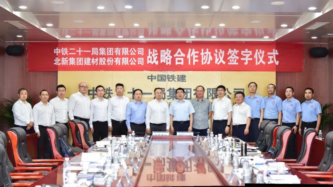 中鐵二十一局集團(tuán)、西部鐵建工程材料科技有限公司和北新建材有關(guān)部門(mén)、單位負(fù)責(zé)同志參加簽約儀式和座談。中鐵二十一局集團(tuán)有限公司隸屬國(guó)務(wù)院國(guó)資委下屬的中國(guó)鐵建股份有限公司,是集工程建設(shè)、科技研發(fā)、房地產(chǎn)開(kāi)發(fā)、礦產(chǎn)資源開(kāi)發(fā)及商貿(mào)經(jīng)營(yíng)等于一體的國(guó)有特大型建筑企業(yè)集團(tuán)。擁有施工機(jī)械、檢測(cè)等設(shè)備4137余臺(tái)(套),年度施工能力400億元以上。先后完成了青藏鐵路等60多項(xiàng)國(guó)家鐵路干線工程建設(shè)、13000多條公里電氣化鐵路工程建設(shè),都汶高速等40多條高等級(jí)公路建設(shè)。曾先后榮獲中國(guó)建筑工程魯班獎(jiǎng)、詹天佑獎(jiǎng)、廣廈獎(jiǎng)、國(guó)家優(yōu)質(zhì)工程金(銀)獎(jiǎng)、全國(guó)百項(xiàng)精品工程獎(jiǎng)30多項(xiàng);榮獲省(部)級(jí)優(yōu)質(zhì)工程獎(jiǎng)60多項(xiàng);榮獲國(guó)家、省部級(jí)科技進(jìn)步獎(jiǎng)30多項(xiàng),其中國(guó)家科技進(jìn)步特等獎(jiǎng)1項(xiàng);國(guó)家和省部級(jí)工法40多項(xiàng)、專(zhuān)利130多項(xiàng),其中發(fā)明專(zhuān)利30多項(xiàng),創(chuàng)中國(guó)建筑施工企業(yè)新紀(jì)錄6項(xiàng)。
