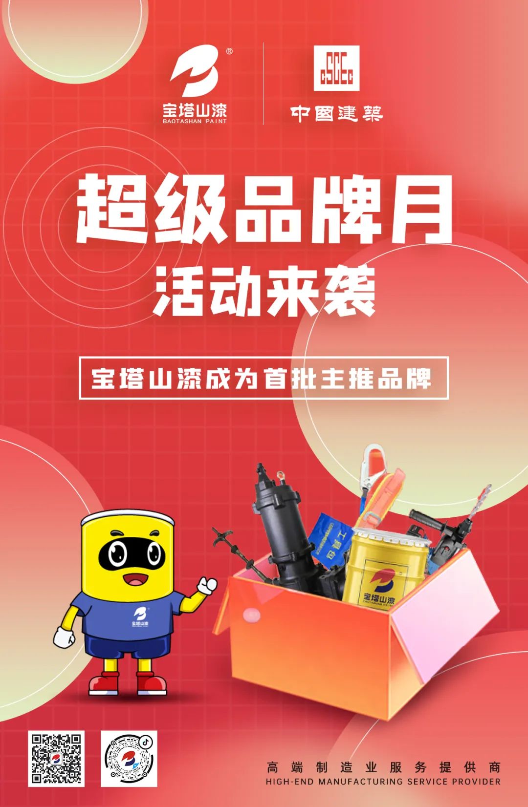 作為中建集團長期合作企業,寶塔山漆憑借高品質產品與服務成為“超級品牌月”活動首批主推品牌,這不僅是中建集團對寶塔山漆的肯定,更是整個建筑行業對寶塔山漆的認可。