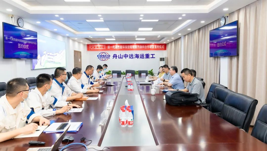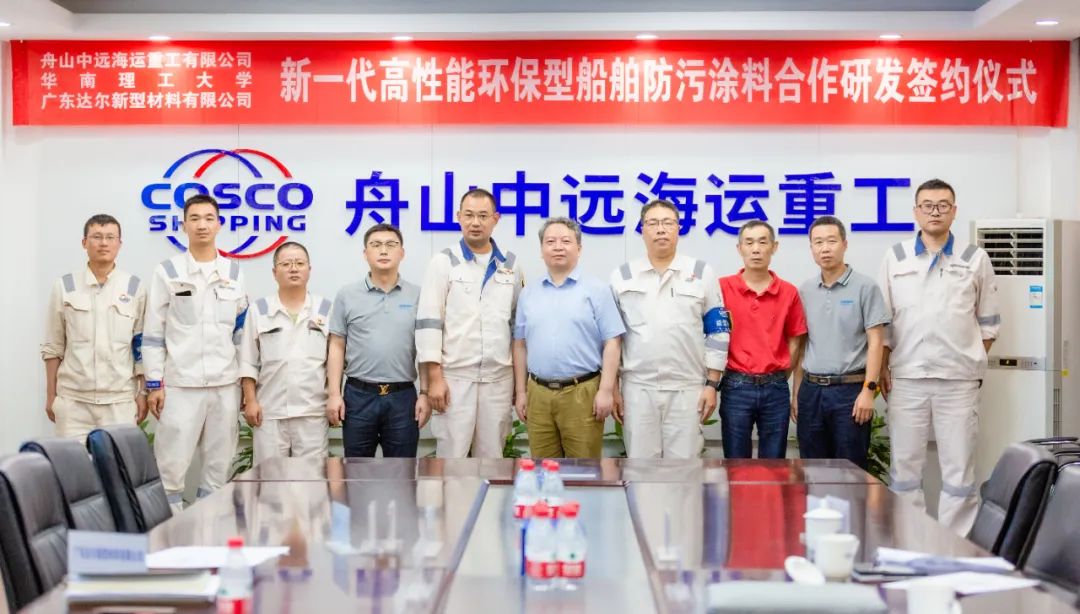 為積極踐行船舶全生命周期管理理念,探索環(huán)保、高性能、長效的防腐材料,助力企業(yè)高質量發(fā)展,7月29日,舟山中遠海運重工與華南理工大學、廣東達爾新型材料有限公司簽署“新一代高性能環(huán)保型船舶防污涂料合作研發(fā)協議”。