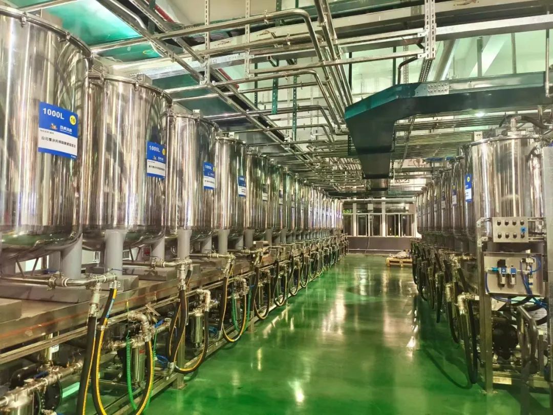 雙虎涂料的這條全自動工業漆生產線于2022年8月22日正式投產,實現了自動配色、自動生成配方、自動分桶、自動配料、自動壓蓋、自動混勻、自動碼垛全流程的智能化生產,所有生產數據存儲,形成大數據,深度學習并持續優化配方,隨著工作時間的推移,數據量越來越大,配方就會越來越精準,生產效率會持續提升。