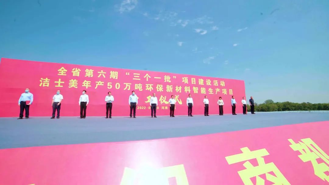 9月28日上午,河南省第六期“三個一批”項目建設活動集中開工儀式在潔士美環保新材料智能生產項目現場舉行。