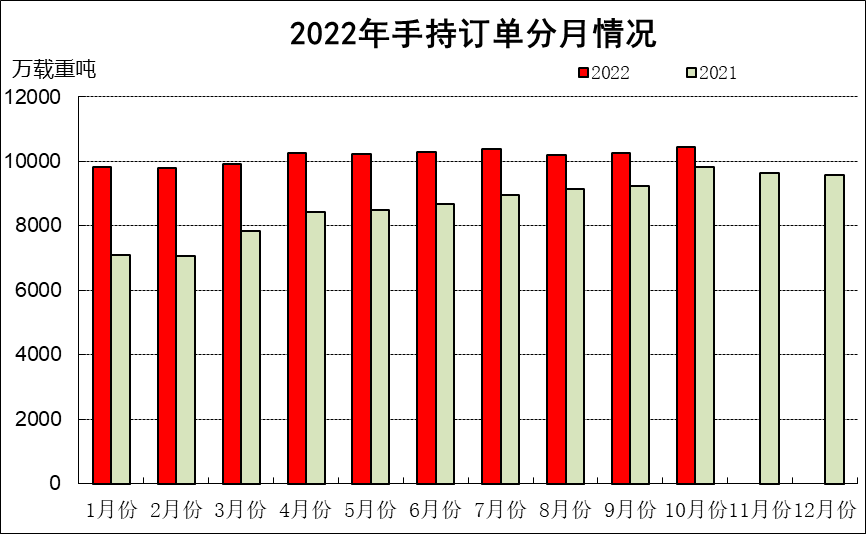 1~10月,50家重點監(jiān)測的造船企業(yè)完工出口船2588萬載重噸,同比下降13.4%;承接出口船訂單3344萬載重噸,同比下降39.3%;10月末手持出口船訂單9334萬載重噸,同比增長8.0%。出口船舶分別占重點造船企業(yè)完工量、新接訂單量、手持訂單量的88.5%、94.8%和92.0%。