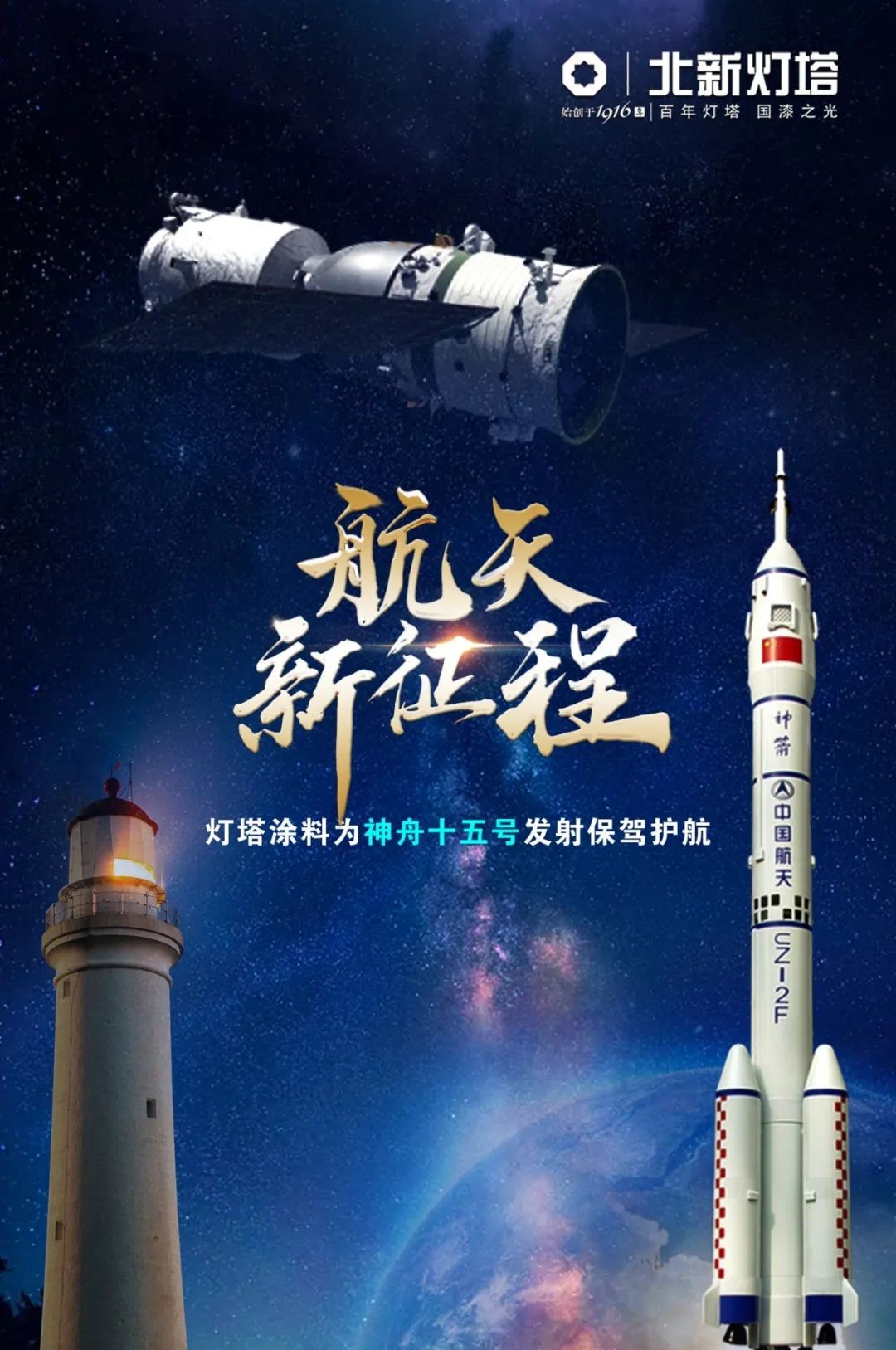 中國工業發展歷史上,“燈塔牌”涂料代表著中國民族涂料工業的驕傲,并一直在國家重點軍工項目、特殊涂層等高精尖領域進行研制、生產和應用,尤其在航空航天領域取得了矚目的成績,我國載人航天工程“神舟”五號到“神舟”十四飛船、“嫦娥一號”、“嫦娥二號”、“嫦娥三號”繞月衛星、“天宮一號”空間站、長征系列運載火箭等所選用的均為“燈塔牌”涂料。