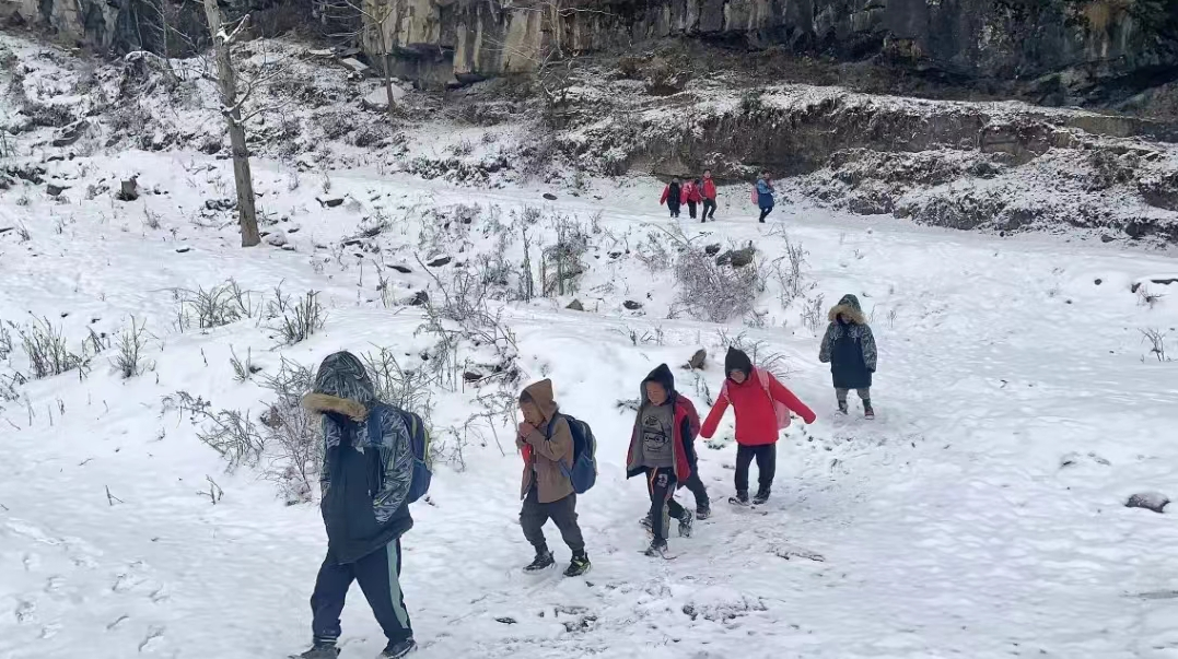 踏入冬季,孩子們需要冒著嚴寒大雪,走過漫長崎嶇的山路,在冰冷刺骨的教室里上課,這里沒有暖氣、沒有暖爐,孩子們仍每天堅持,度過一個個冬天。但今年的冬季卻比以往更加難熬,因為小學的屋頂漏水,孩子們無法正常上課了。