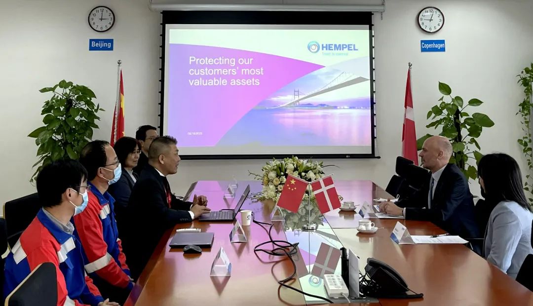 海虹老人亞太區基礎設施業務副總裁古志軍先生向總領事S?ren Bindesb?ll先生一行介紹了海虹老人集團的歷史以及在中國的發展歷程。在中國,海虹老人高品質的涂料解決方案為中國第一高樓上海中心大廈、中國第一座大型懸索橋虎門大橋、年旅客吞吐量全球第二的北京首都國際機場T3航站樓等大型地標項目保駕護航,給總領事S?ren Bindesb?ll先生留下了深刻的印象。