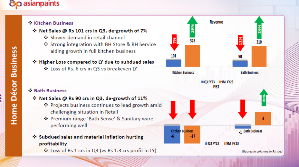 1月19日,印度涂料制造商亞洲涂料(Asian Paints)發布2023財年(2022年4月1日-2023年3月31日)Q3業績報告。