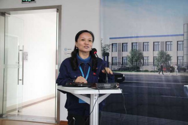 華誼涂料公司黨總支書記童嘉瑛向大家介紹公司情況